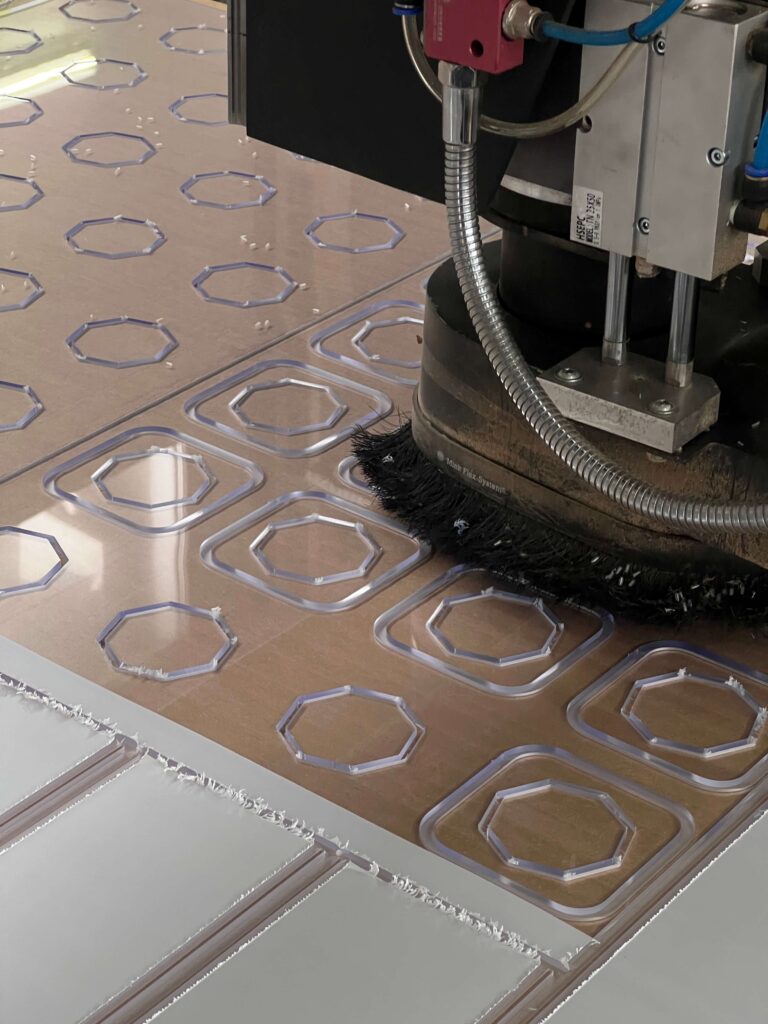 PMMA (Plexi): Przezroczyste i estetyczne, idealne do frezowania reklam i elementów wizualnych.